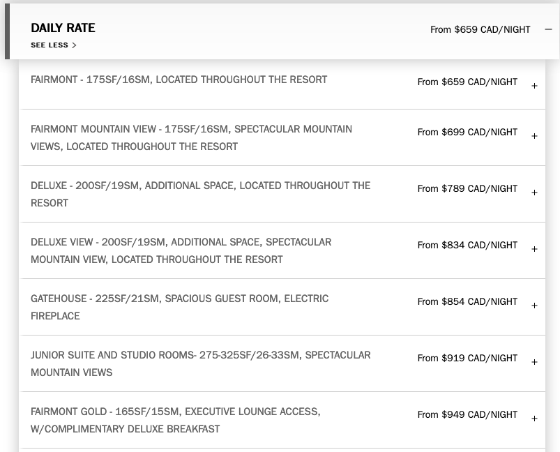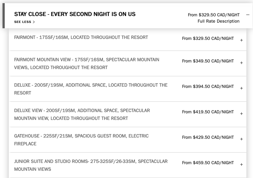 As you can see the offer does provide significant savings as this isn’t one of those offers where they boost the price and discount it. It is based on the best available rate and they simply charge you 50% of that rate per night. It even provides big savings over the CAA/AA rate. I also checked the Alberta Residents Rate (B.C. has one as well for Whistler) that provides discounts of up to 30% but I couldn’t find any availability which leads me to believe that Fairmont has actually pulled that deal as they probably expect most of their traffic to be from within the province. I must say I am a little surprised that the daily rates are in the $600 range given the current situation in regards to travel and that these hotels haven’t even reopened for business yet.