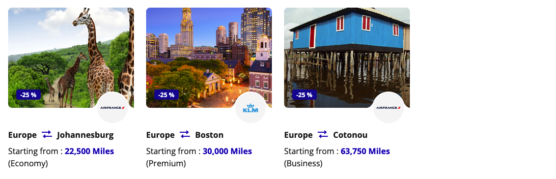 October Promo Rewards – Save 25% on the Flying Blue Miles usually required for a reward ticket. This month includes Beijing, Johannesburg, New York, Vancouver and more. Book by Oct 31, 25 for travel until Mar 31, 26 Click here for more details or book your tickets online at Airfrance.com or KLM.com