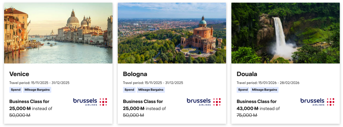 - Long Haul Business Class over 50% off (for example a transatlantic round trip is 55,000 miles instead of 112,000 or 61,000 miles instead of 125,000)