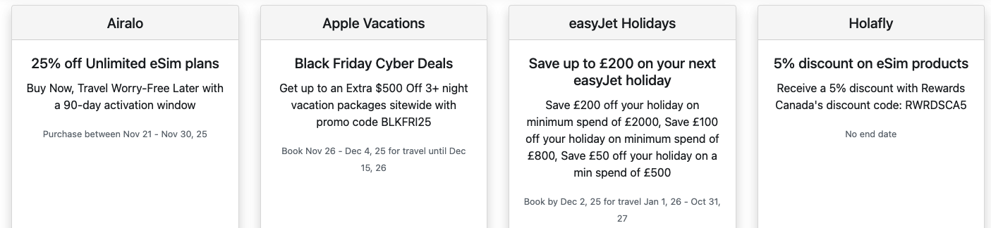 There are offers for flights, hotels, car rentals, vacations and more – from all around the world! And new this year are some excellent eSim offers too!