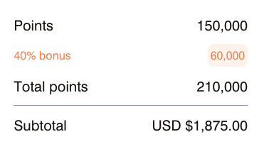 With a 40% bonus you are buying points for 0.89 cents US$ each: