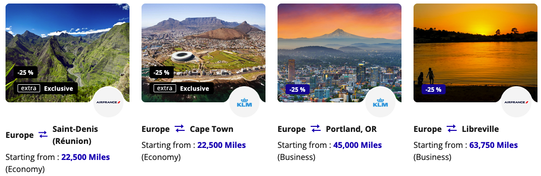 The newest set of Air France KLM’s Promo Rewards are now available. This month there are 41 cities in total, all of which are 25% off their standard minimum redemption amount for economy, premium economy and business class redemptions (fare class varies by route).